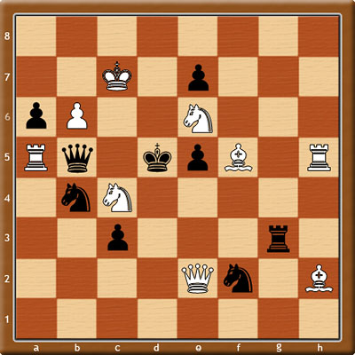 A117/ Kc7,De2,Va5,Vh5,Sf5,Sh2,Jc4,Je6,Pb6 - Kd5,Db5,Vg3,Jb4,Jf2,Pa6,c3,e5,e7 (9+9)