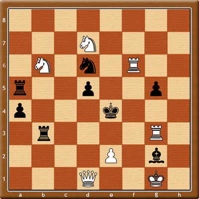 Juříček S. (CZE) #2 (C+) 4468 Freie Presse 22.10.2004 (GER) A074 / Kg1,Dd1,Vf6,Vg3,Jb6,Jd7,Pe2 - Ke4,Va5,Vb3,Sg2,Jd6,Pa4,d5,g5 (7+8) mat 2. tahem řešení: ZDE